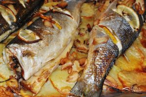 Fırında levrek tarifi: patates, soğan ve sarımsak soslu