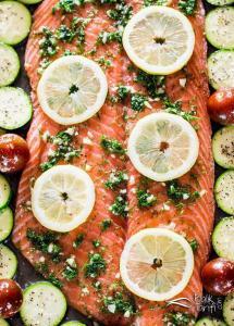 Fırında dereotu, sarımsak ve bal aromalı sebzeli somon balığı tarifi