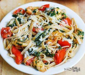 Karidesli Makarna Tarifi: Domates, ıspanak ve sarımsaklı